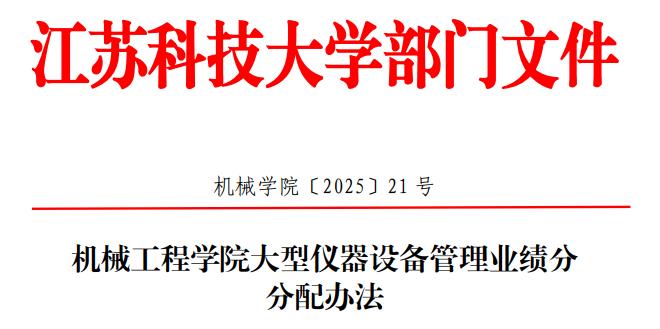 学院制定并发布《木瓜视频 大型仪器设备管理业绩分分配办法》(机械学院〔2025〕21号),明确了大型仪器设备管理的工作内容、业绩分来源与分配原则。