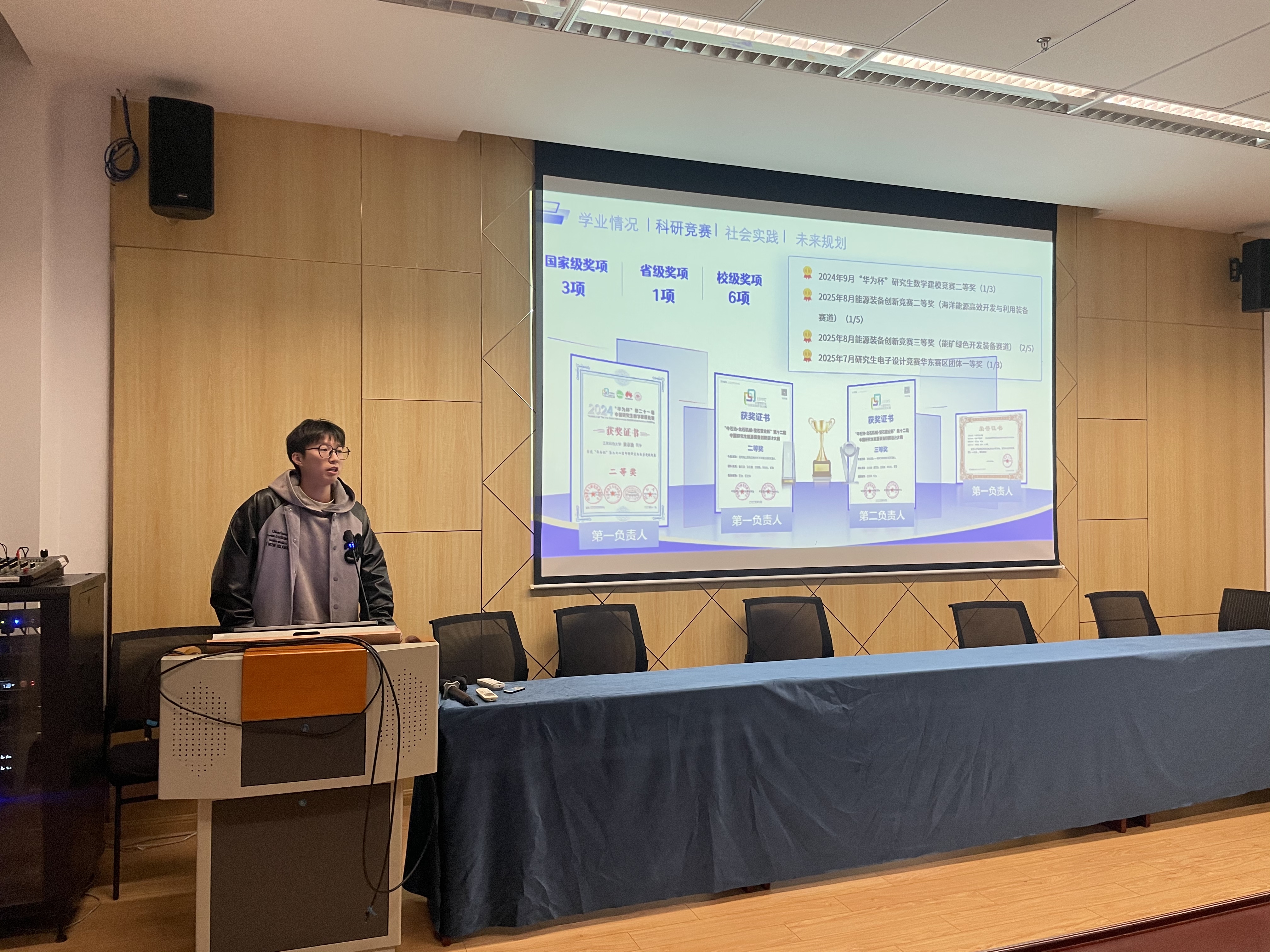 活动伊始,黄京波以“科学规划学业,稳步启航研途”为主题,系统分享了研究生各阶段的学习重点。他建议研一阶段注重课程学习与文献积累,研二阶段深入课题研究与文献精读,研三阶段则应尽早明确发展方向并做好相应准备。他鼓励新生始终保持科研热情,将探索兴趣转化为持续前行的动力。