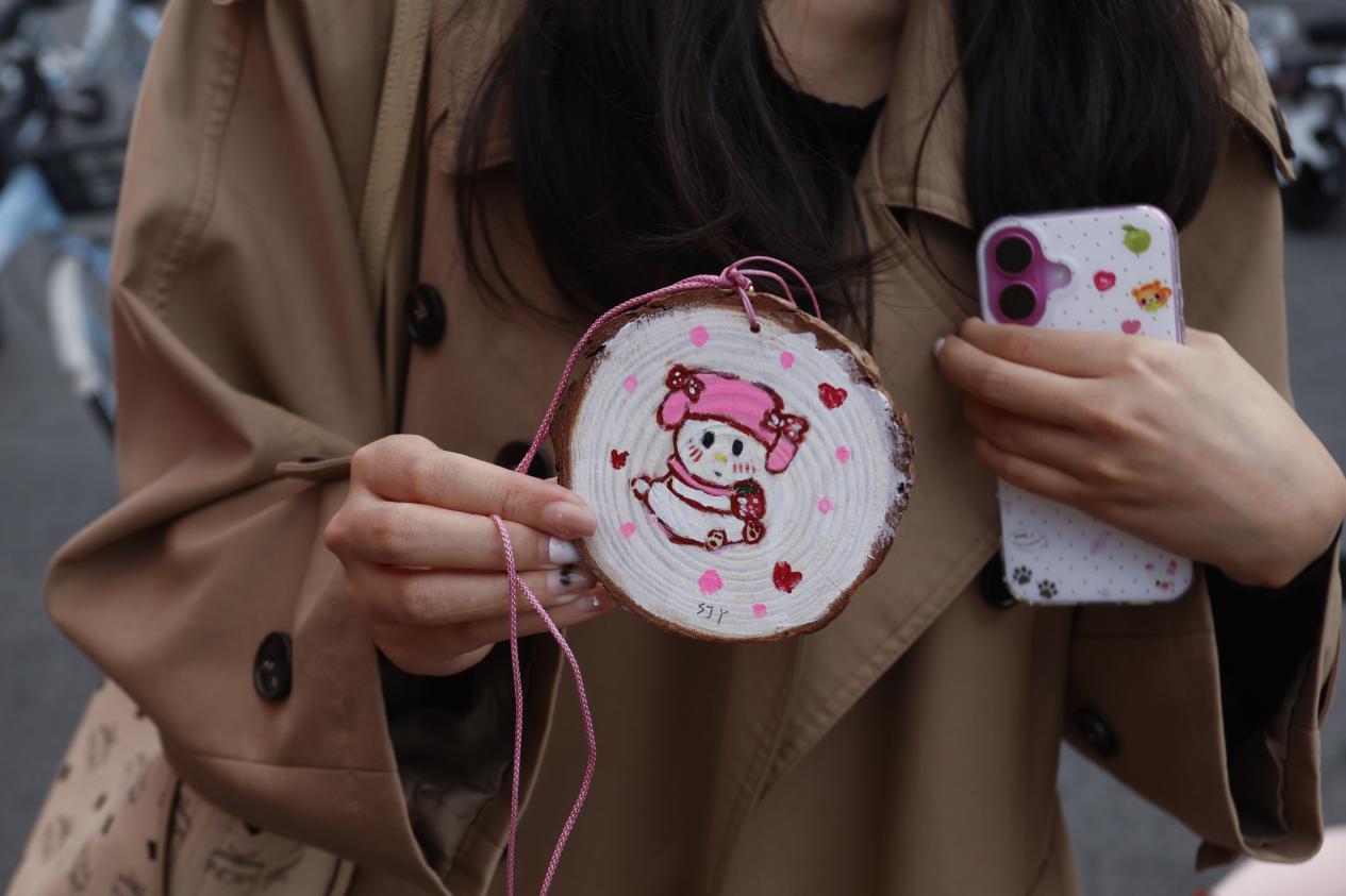 本次活动有许多优秀的同学参与其中,她们都展现出高超的绘画技能与深厚的文学功底。例如有的同学画了一只可爱的小章鱼,有的同学画了一个灵动的小雪人,有的同学则在木轮上用心的写下一个“禧”字,既是表达对母校的祝福,也体现对深秋的喜爱。