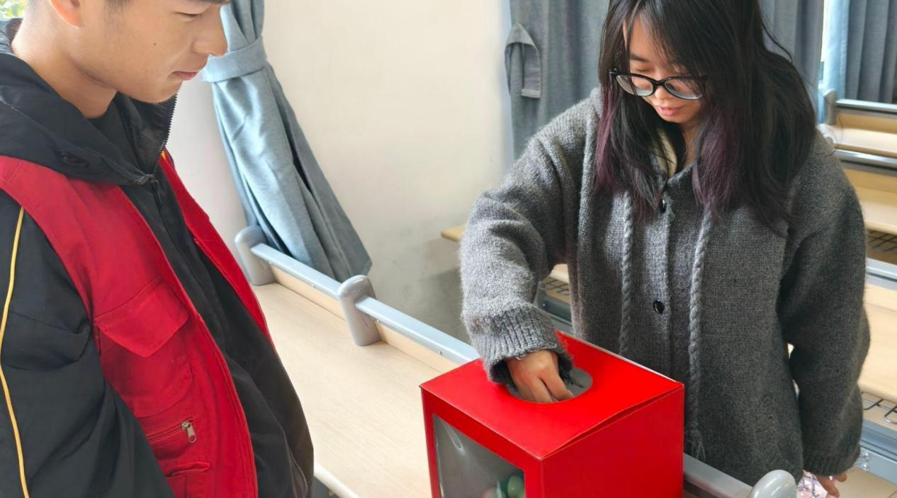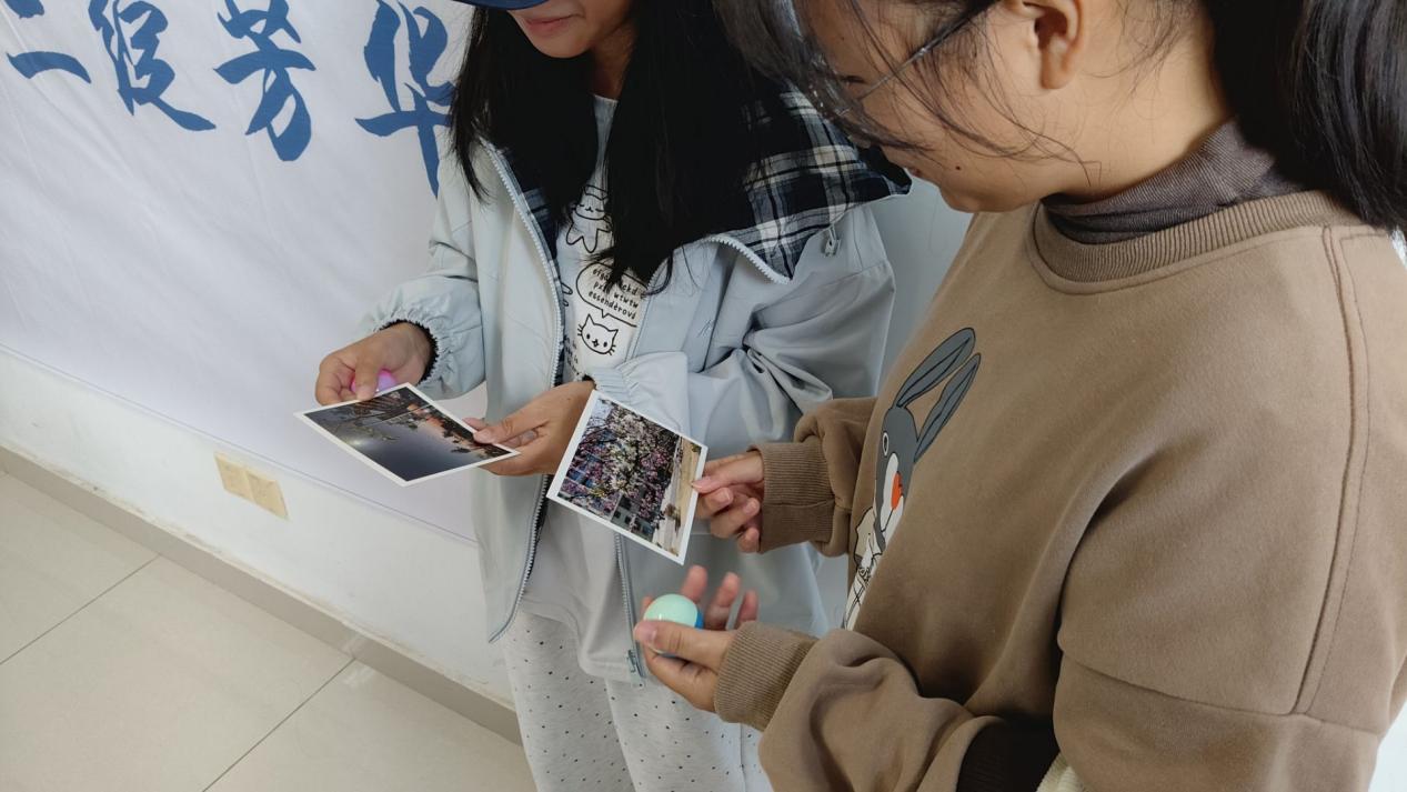 活动伊始,同学们陆续前来,对着覆盖了半面墙的洁白画布,以掌为印,以心为彩,在画布上留下属于自己的一抹颜色。五彩手印交织重叠,宛若青春轨迹的汇聚,象征着每一位学子与江科大不可分割的情感纽带。与此同时,“明信片盲盒”环节也吸引了众多同学驻足。一张张承载校园光影与青春故事的定制明信片,由参与者随机抽取数字之后,在志愿者处兑换,其背面寄语真挚动人,字里行间流淌着对母校的祝福与眷恋。